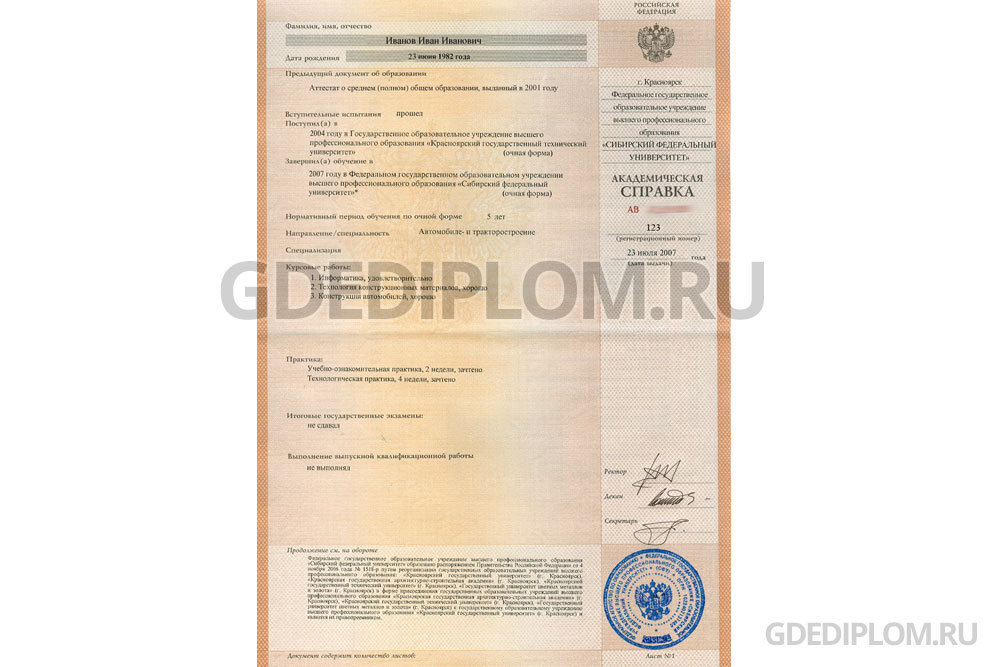 На нашем сайте Вы можете купить академическую справку – документ, который выдается в высших учебных заведениях по запросу лицам, которые не освоили полностью программу обучения и не получили диплом о высшем образовании. Для того, чтобы получить ее в ВУЗе, необходимо закончить и сдать экзамены хот бы за 1 семестр. Такая справка дает право на поступление для дальнейшего обучения с перезачтением академической разницы.