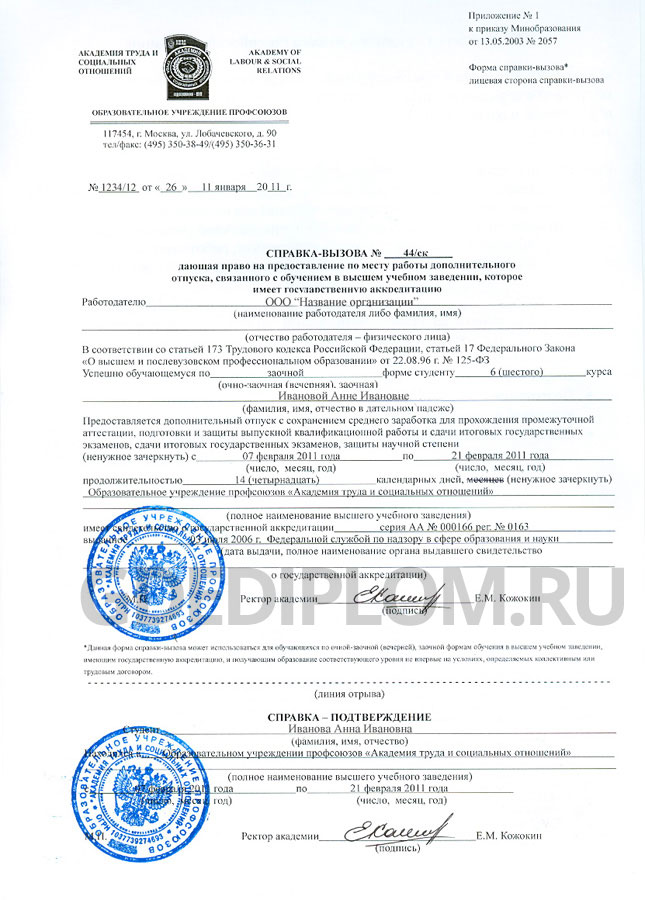 | Справка – вызов на сессию любого года Подробнее |
